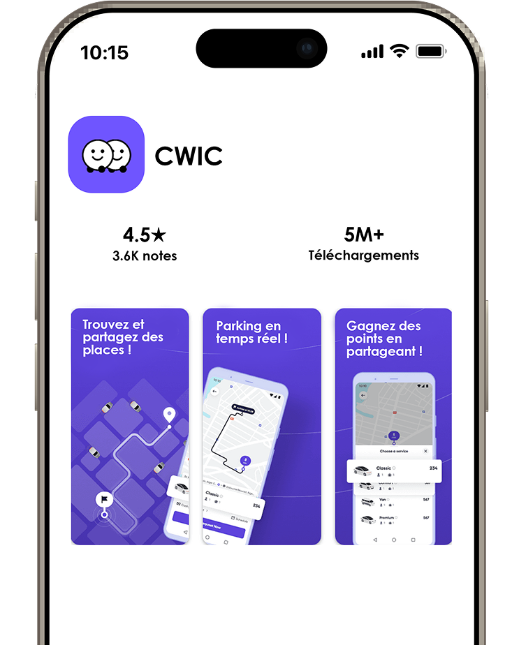 Avec CWIC, trouvez des places en temps réel, gagnez des points en partageant les vôtres et transformez chaque trajet en une expérience sans stress.